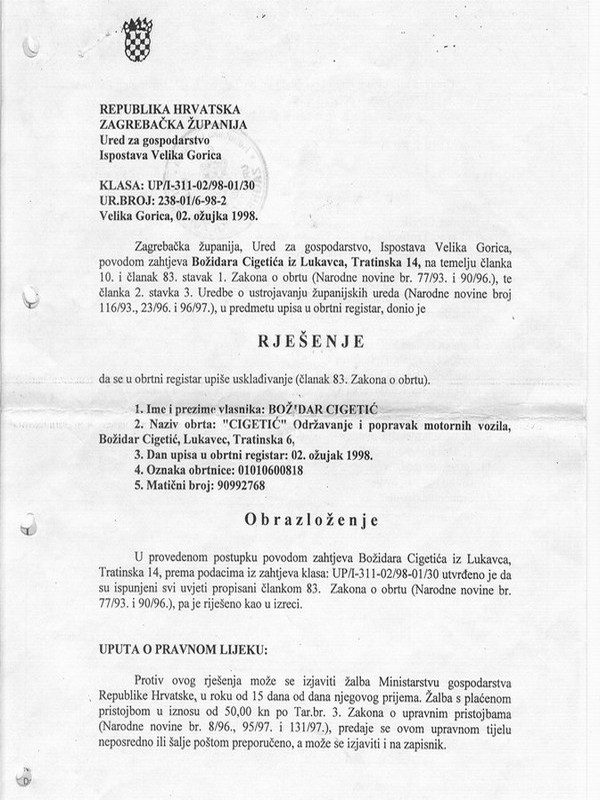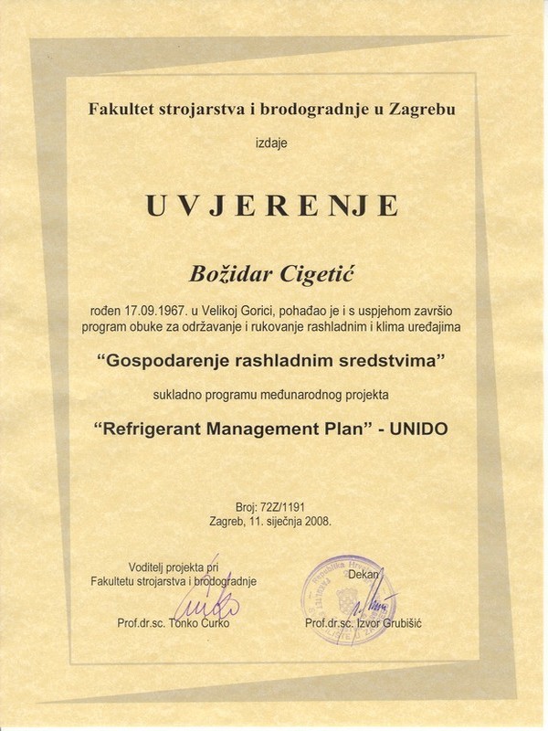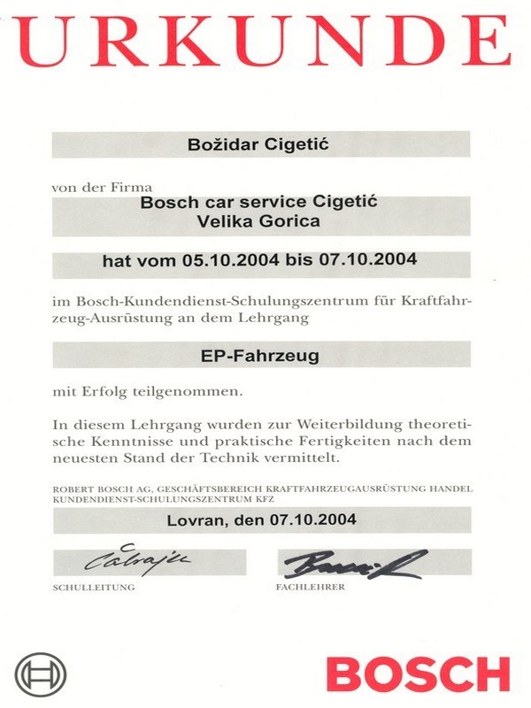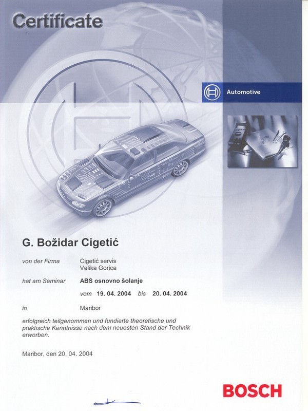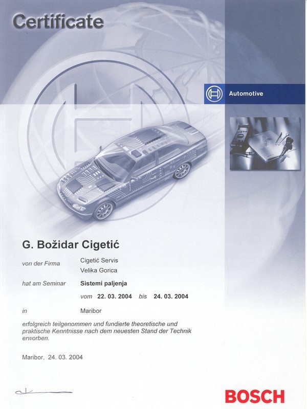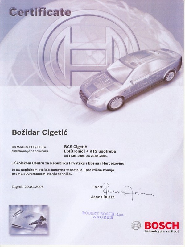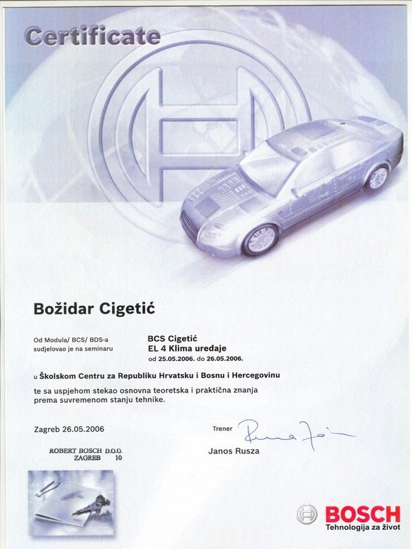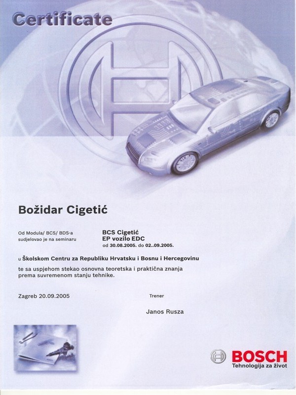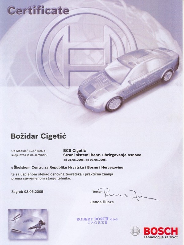O tome svjedoče brojni certifikati s raznih područja održavanja vozila, dijagnostike, marketinga, itd, ali i potvrde i rješenja relevantnih institucija Republike Hrvatske.